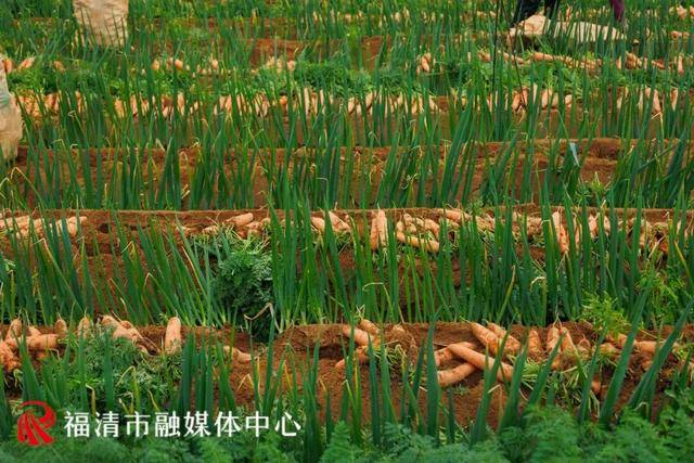 寒冬时节,港头镇东光村的千亩农田里一片繁忙。福清市富源农业综合开发农民专业合作社创新试种的“大葱套种胡萝卜”模式,迎来了首批收获。拔出的胡萝卜色泽橙红、条形匀称,与田间保留的一排排绿葱相映成趣,勾勒出一幅生动的丰收画卷。
