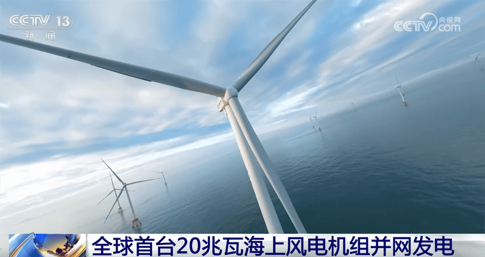 在福建闽南海域,随着长度达147米的叶片缓缓转动,全球首台20兆瓦海上风电机组正式并网发电,风机每转一圈能发出50多度电。