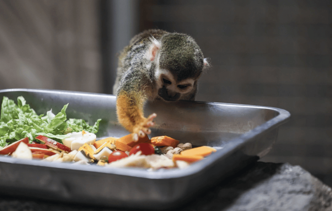 为了让动物们也过个热闹年,饲养员们将新鲜的南瓜、胡萝卜、葡萄等食材经过精心搭配,被制作成一道道“新春蔬果大餐”送进笼舍。环尾狐猴抱着“元宝”状的胡萝卜啃得欢快,黑叶猴对着花朵造型的南瓜左闻右嗅,大熊猫“海滨”则自顾自抱着竹子大快朵颐。“今年是马年,专门新增了矮马,希望动物们也感受年味。”饲养员笑着说。